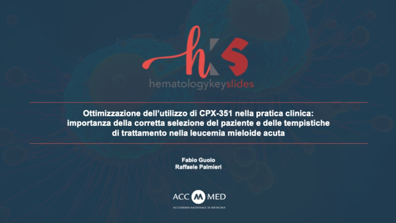 Questa formulazione permette di ottenere risultati migliori rispetto alla chemioterapia convenzionale nei pazienti affetti da leucemia acuta mieloide secondaria, come dimostrato dallo studio di fase III che ha portato all’approvazione. Tuttavia, per ottenere il massimo dal farmaco, è necessaria un’attenta selezione del paziente candidato alla terapia, unitamente a una corretta gestione delle tempistiche di trattamento. Lo scopo di questa presentazione è pertanto di passare in disamina le evidenze di utilizzo real-world disponibili per rispondere a questa esigenza.